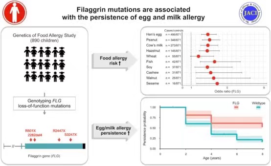 JACI:丝聚蛋白功能缺失突变与鸡蛋和牛奶过敏持续相关
