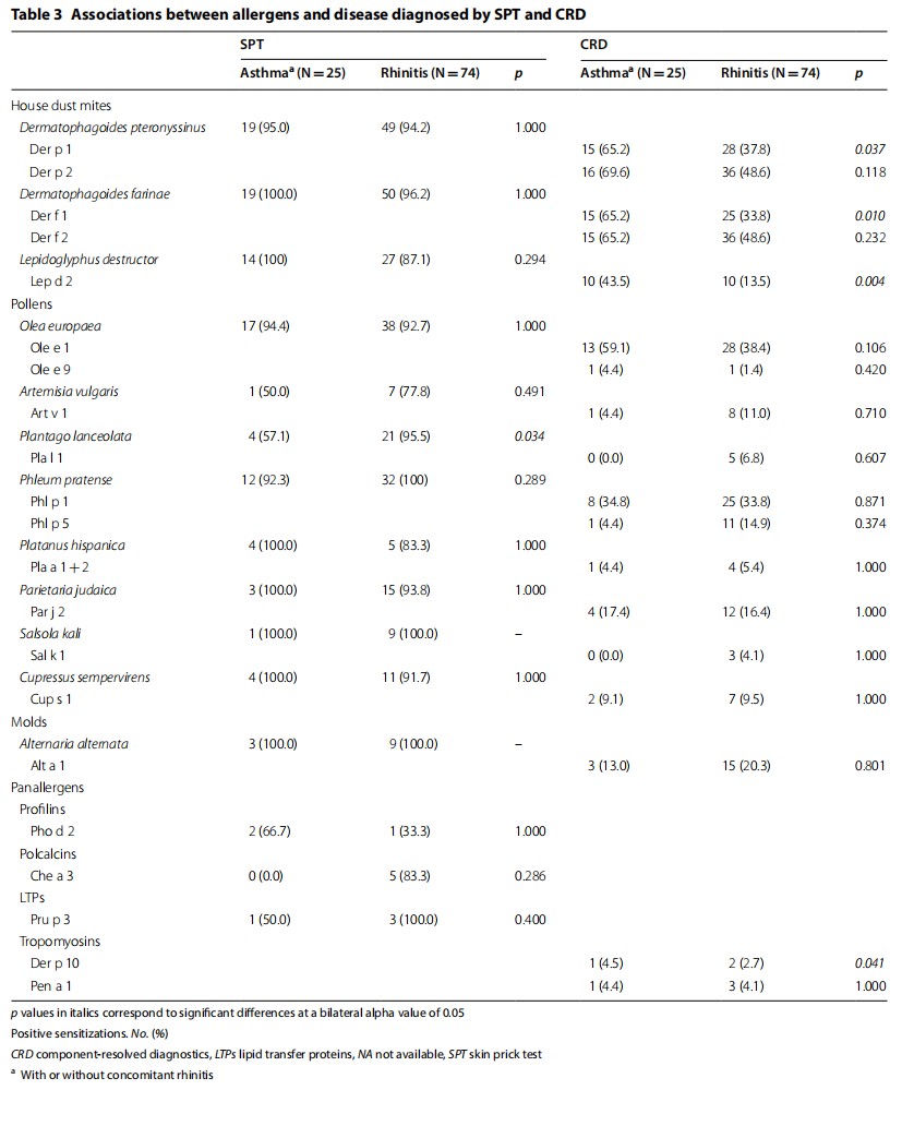 背景:过敏原组分检测(CRD)允许识别单分子过敏原组分,并构成了许多过敏单位的常规做法。然而,皮肤点刺试验(SPT)仍然是许多耳鼻喉科的首选技术,但同时也增加了在呼吸道过敏患者中使用不充分的免疫疗法的风险。本研究旨在比较呼吸道过敏患者SPT和CRD测得的致敏谱,探讨致敏与呼吸道疾病类型和严重程度之间的关系。