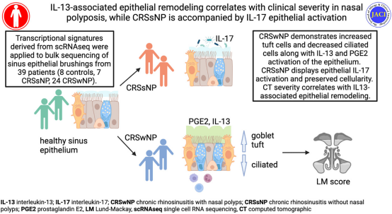 JACI:鼻息肉病患者IL-13相关上皮重塑与临床严重程度的相关性