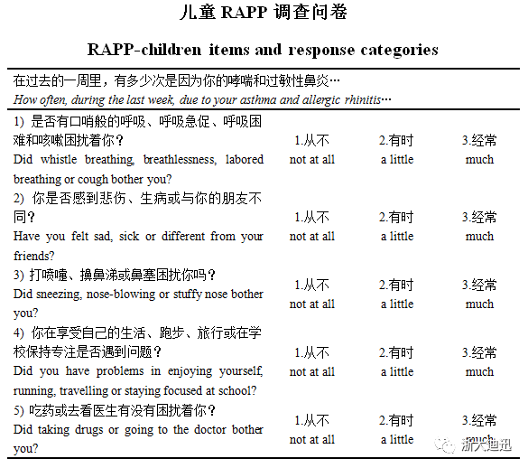 Clin Exp Allergy: 儿童RAPP问卷—评估哮喘和鼻炎患者生活质量的新工具