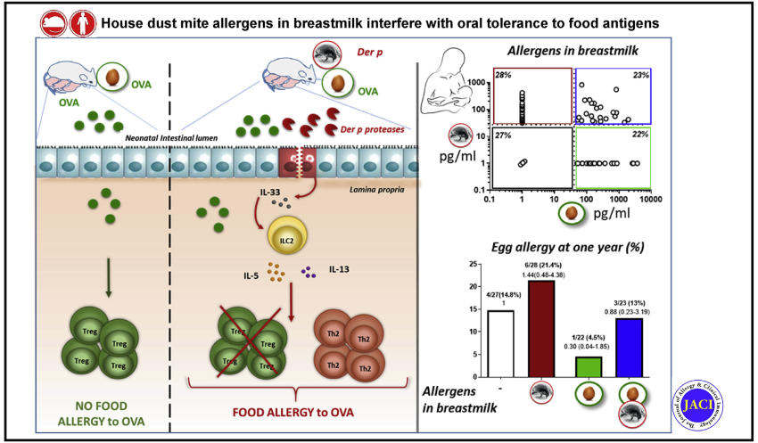 JACI:早期经母乳接触屋尘螨过敏原在IgE介导的食物过敏易感性中的作用