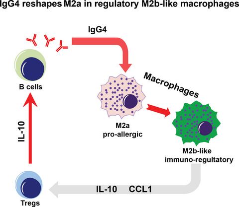 IgG4 drives M2a macrophages to a regulatory M2b-like phenotype: potential implication in