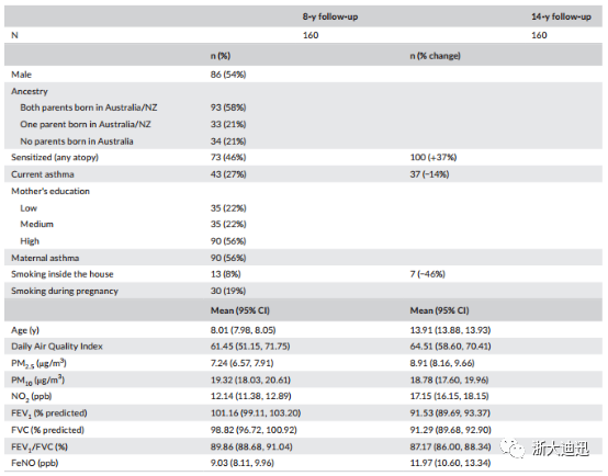 方法:本研究对一组居住在澳大利亚悉尼的高危儿童在8岁和14岁时进行肺活量测定和呼出一氧化氮(FeNO)测定。以肺功能测定当天及之前3天的环境花粉浓度作为暴露测量。住宅区的绿色度是从卫星图像中提取出来的。我们模拟了6种花粉类型与肺功能和FeNO的关系。我们也评估了住宅绿化的改善效果。