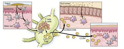 ① 近年来食物过敏的流行导致急需寻找安全有效的免疫治疗方式;② 皮肤免疫治疗(EPIT)在小鼠中的研究得到了安全有效的数据;③ 小鼠模型还发现了一些可能对食物过敏原产生耐受性机制,包括调节性T细胞的诱导;④ 该方面研究目前缺乏临床资料,但在一些小型的早期研究表明,对于花生和牛奶的过敏患者,EPIT比其他特异性变应原免疫治疗方法更具有安全性;⑤ 该疗法的目的是防止意外暴露于已知的食物过敏原。