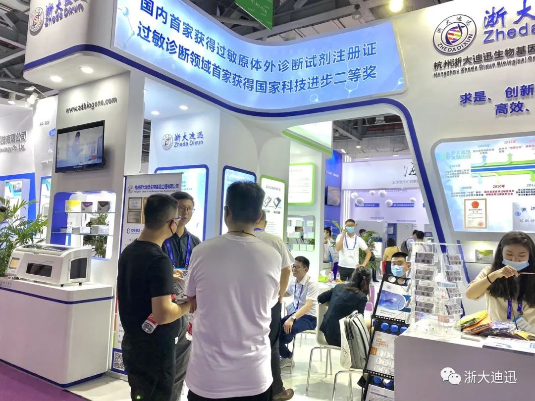 作为国内首家获得过敏原体外诊断试剂SFDA注册证的生产企业,浙大迪迅专注过敏诊断十七载,秉承“求是、创新、高效、卓越”理念,为过敏性疾病患者提供最优质的过敏原检测服务。浙大迪迅在本次博览会设立特装展台,隆重推出本公司新系列产品--100项食物特异性抗体IgG检测试剂盒(蛋白芯片法),受到众多著名专家学者和经销商伙伴的强烈关注,纷纷前来观摩学习,交流经验。